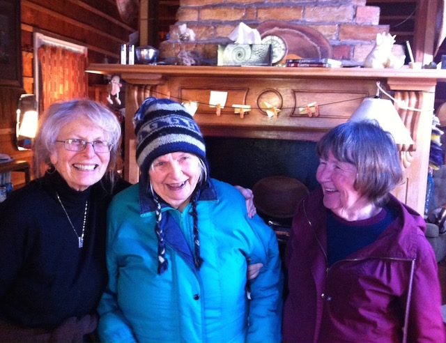 Sue (centre) with old friends: on left, Lois Webster, and on right, Lena Bulmer.