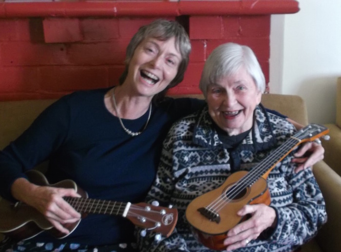 Sue and Alice with ukuleles